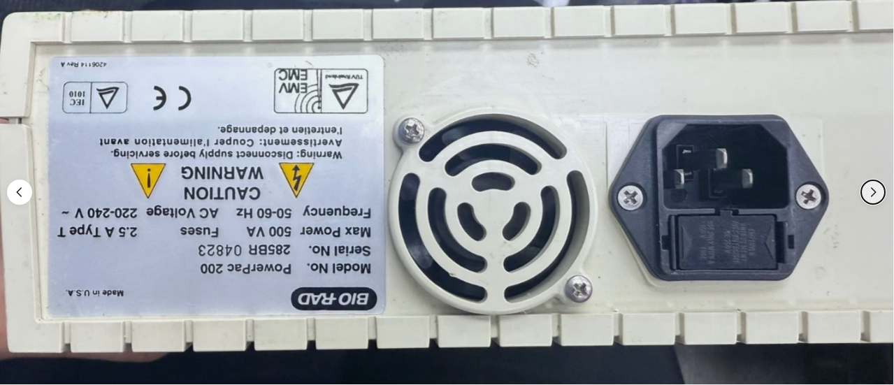 The Bio-Rad PowerPac 200 Electrophoresis Power Supply is a reliable and high-quality device designed for use in various medical and laboratory settings. Produced by the reputable brand Bio-Rad, this power supply is ideal for running electrophoresis experiments with ease and precision. With its specific features and capabilities, this product ensures consistent and efficient performance for a range of scientific applications, making it a valuable asset for any research or clinical laboratory.